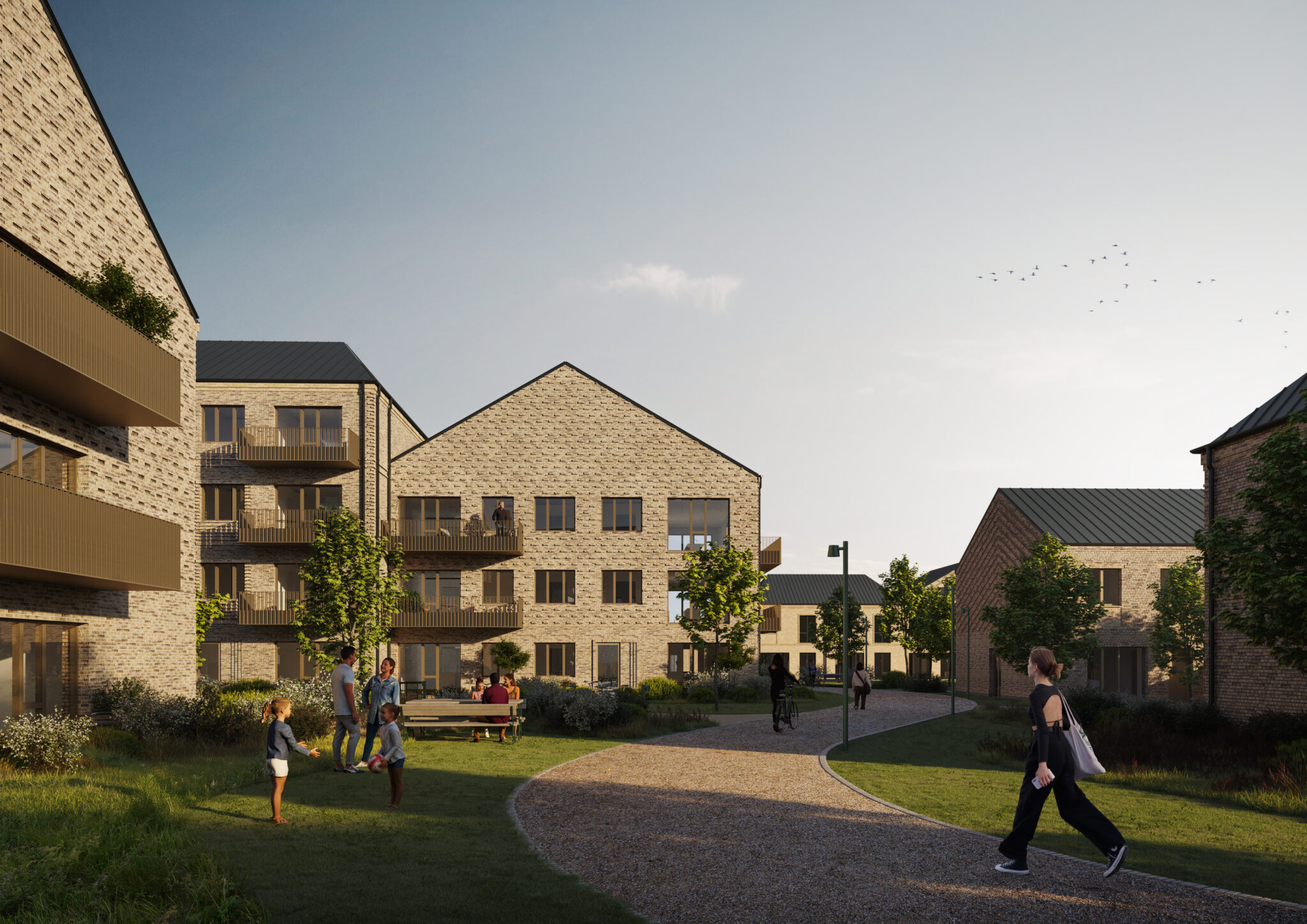 At the heart of the neighbourhood runs Kvarterstien – a green pathway connecting homes, meeting points and activity zones. It creates room for play, tranquillity and the informal encounters that form a vibrant local community.